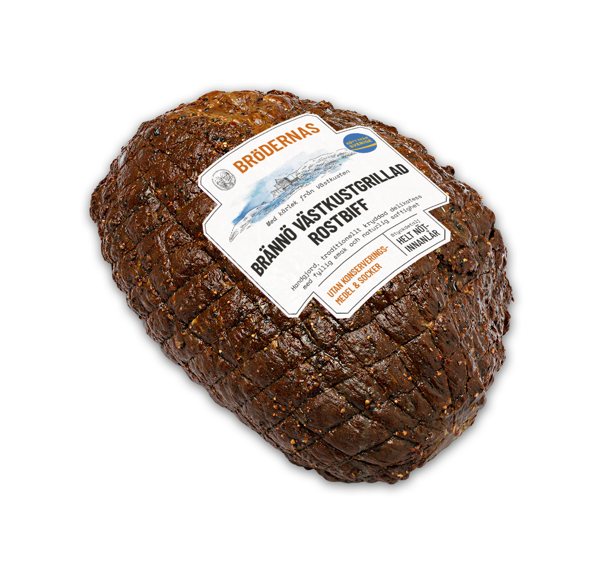 Vår västkustgrillade rostbiff är en exklusiv handgjord delikatess gjort på svenskt nötinnanlår. Rostbiffen är traditionellt kryddad och grillad, har en fyllig smak och en naturlig saftighet. Passar perfekt när det vankas studentfirande och festligheter där man vill bjuda nära och kära på det lilla extra.