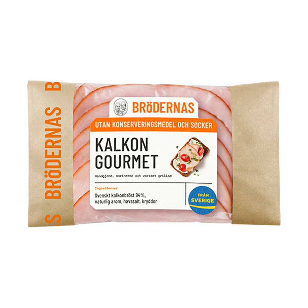 Brödernas Gourmet kalkon är handgjord, marinerad och varsamt grillad. Utan konserveringsmedel och socker. Gjord på Svenskt kött.