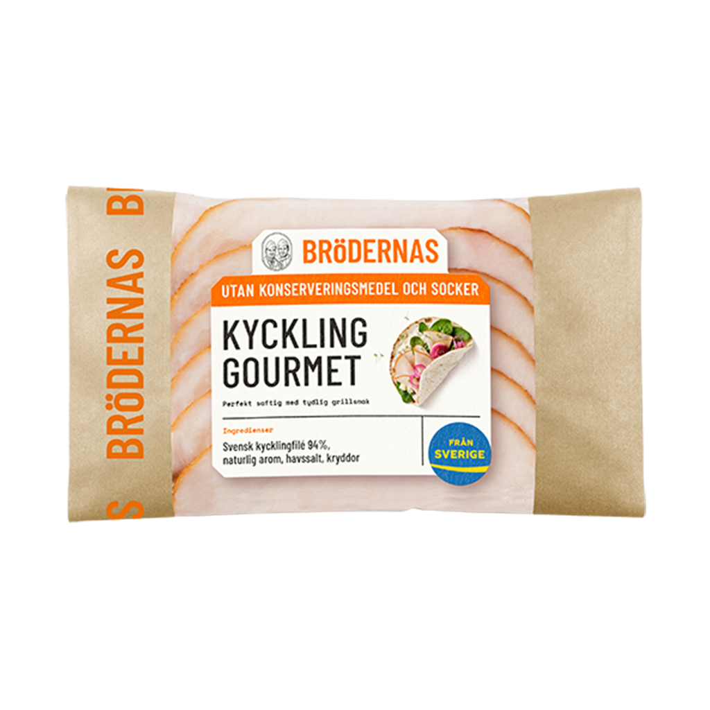 Brödernas Gourmet kyckling har en mild grillsmak och passar perfekt på mackan. Utan konserveringsmedel och socker. Gjord på svensk fågel.